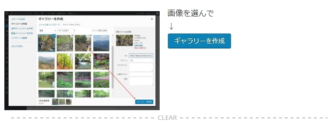 投稿の編集画面に実際には見えない CLEAR(クリア)のラインが引かれました。
