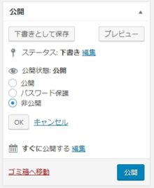 私は「公開」ボタンは押さない!と自身のある方も、「下書きとして保存」で編集中に間違えて「公開」ボタンを押してしまった時は、その後に「非公開」を選ぶ事も可能です。