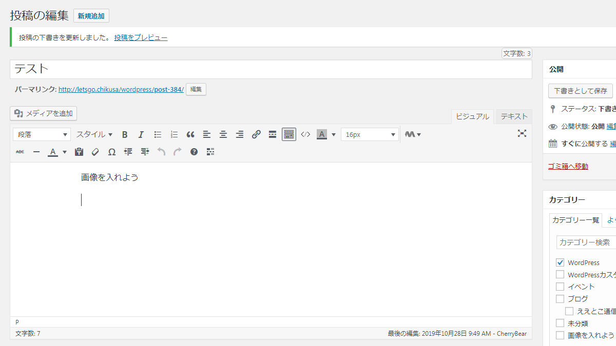 「下書きとして保存」を押すと一つのカテゴリーにチェックが入ります。