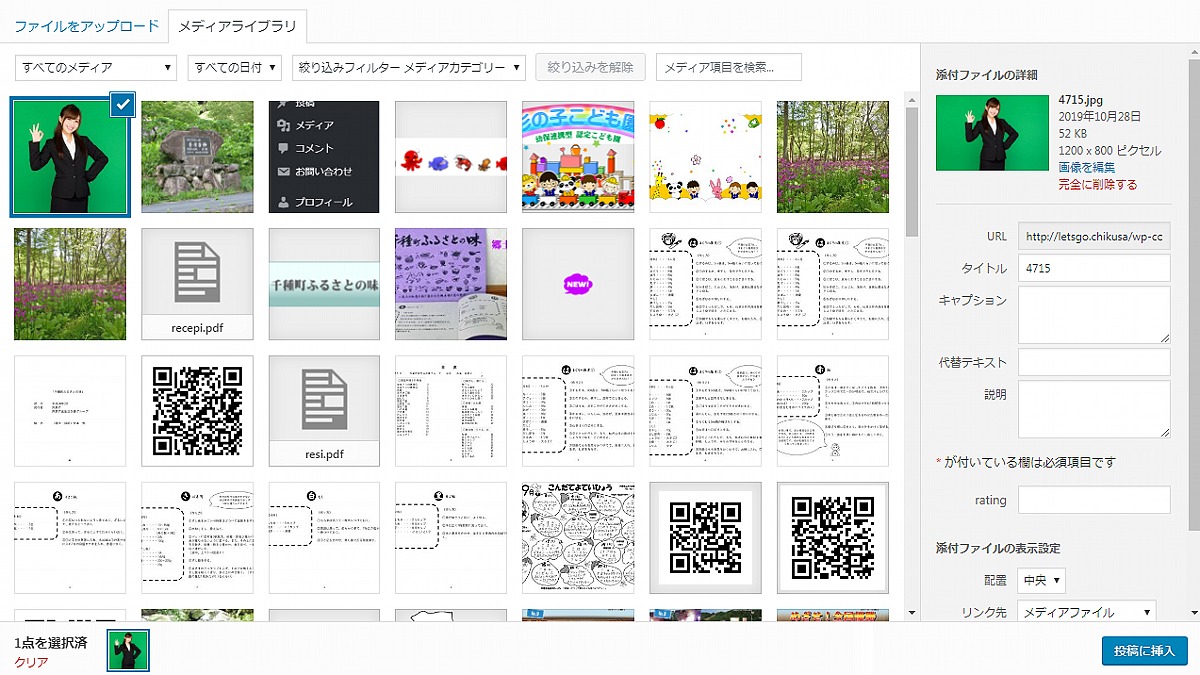 画像の左(右)に文字を並べたいときは「投稿に挿入」の画面で変更